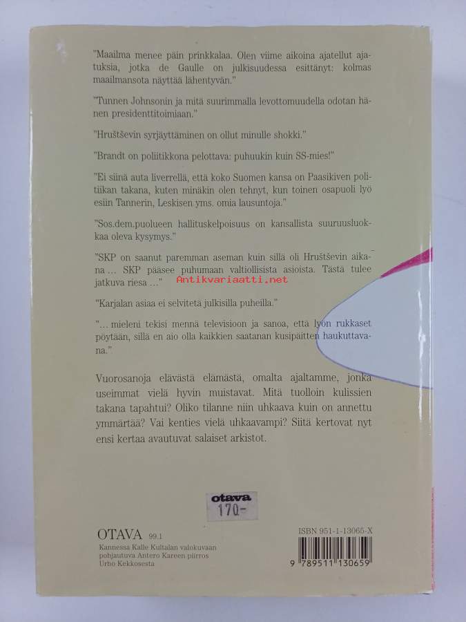 Urho Kekkosen päiväkirjat 1, 1958-62 (ERINOMAINEN)