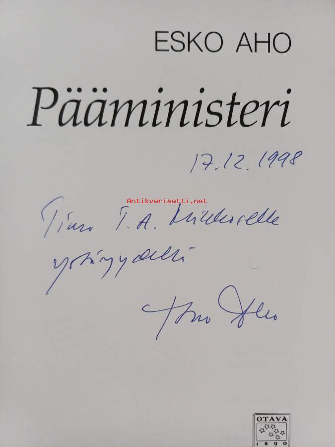 Pääministeri (signeerattu, tekijän omiste)