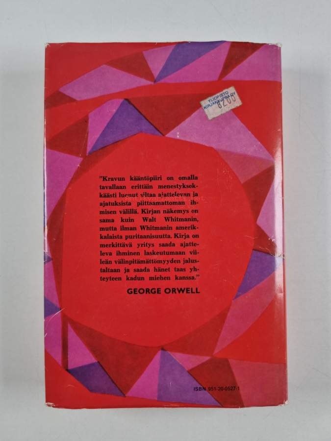 Hyvä. Hieman kolhua etukannen yläkulmassa, selkämyksessä vinoutta. Kansipaperin kunto: joitain repeämiä/kulumaa