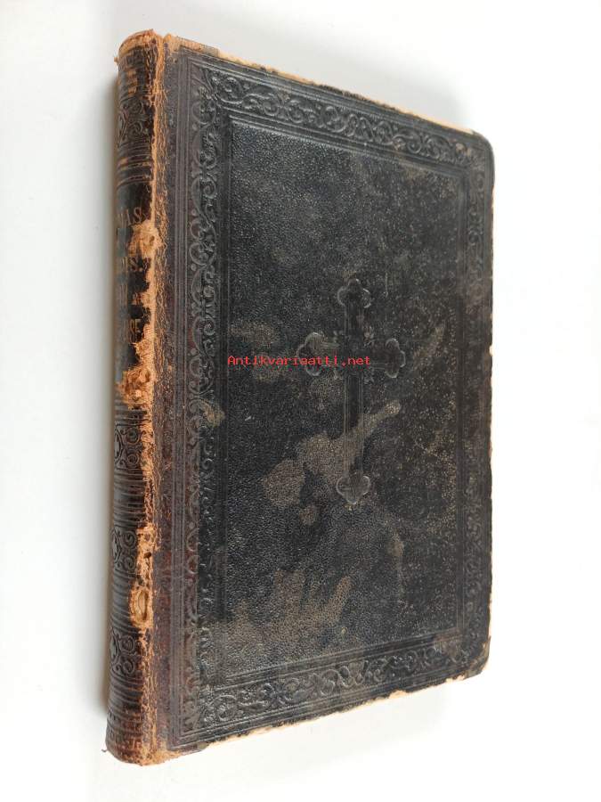 Tyydyttävä. Tarkempi kuntoluokka: K2+ ; Hieman repeämää kansissa, selkämyksessä hieman vinoutta, sidos löystynyt ja näkyvissä. teksti fraktuuraa ; parilla sivulla pienoista läikkää