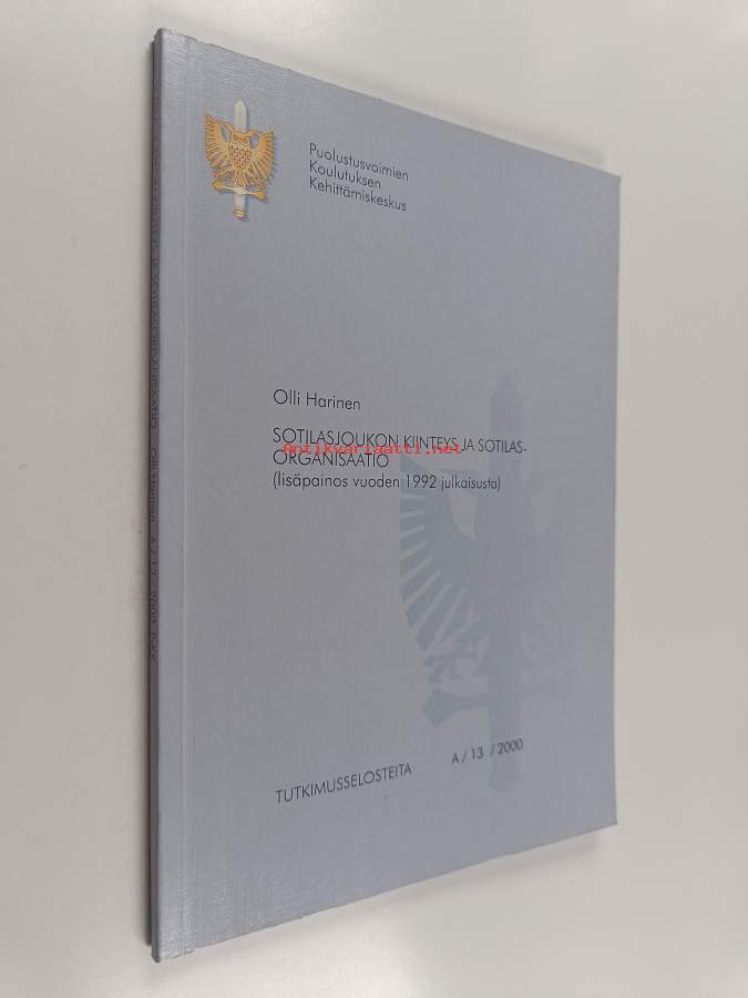 Merkinnät: omistajamerkintä (tarra)Sarja: Sotilassosiologian julkaisusarja. A n:o 7Asiasanat: puolustusvoimat, sotilaat, sosiaaliset suhteet, ryhmäkäyttäytyminen, yhteisöt, reserviläiset, asevelvolliset, sotilassosiologia, sosiometria, gruppbeteende, sosiaalinen järjestelmä, försvarsmakten, soldater, gemenskaper, sociala relationer, reservister, organisaatiososiologia, organisationssociologi, värnpliktiga, sociometri, sitoutuminen (toiminta)