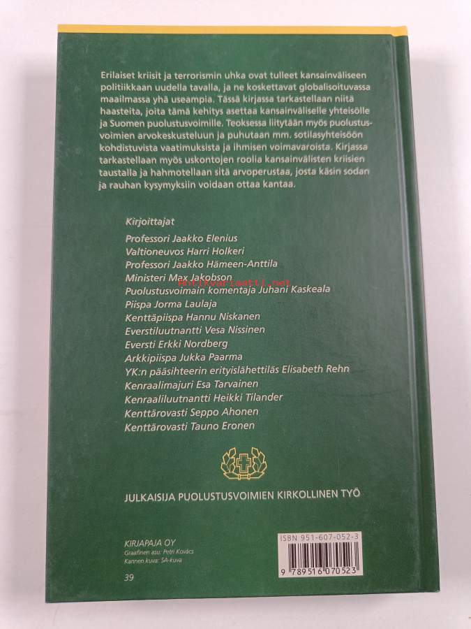 Muu(t) tekijä(t): Hannu Niskanen, Seppo AhonenMerkinnät: omistajamerkintä (tarra)Asiasanat: puolustusvoimat, kriisit, sota, arvot