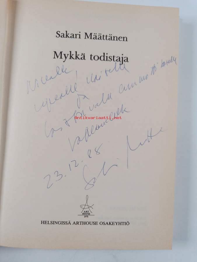 Mykkä todistaja (signeerattu, tekijän omiste, painovirhekappale)