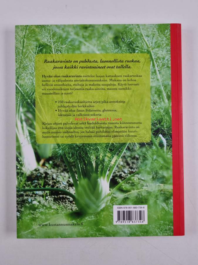 Muu(t) tekijä(t): Sinikka Sajama, Anna HultAlkuteos: Mitt nya raw food kökAsiasanat: ruokaohjeet, leivonnaiset, kasvisruoat, jälkiruoat, smoothiet, raakaravinto