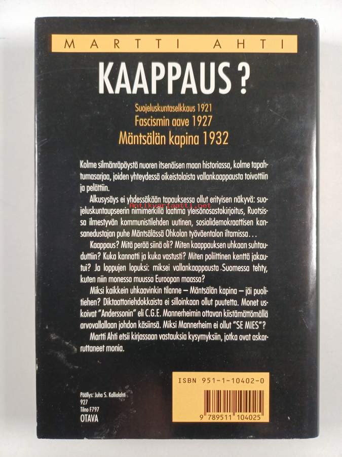 Kaappaus : suojeluskuntaselkkaus 1921, fascismin aave 1927, Mäntsälän kapina 1932
