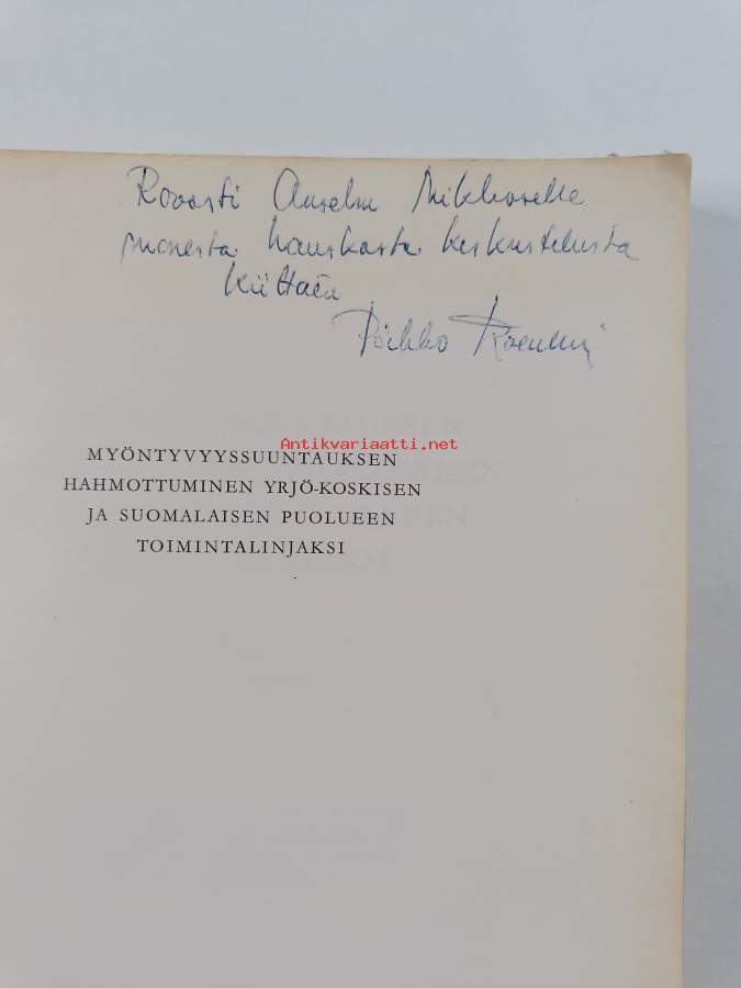 Myöntyvyyssuuntauksen hahmottuminen Yrjö-Koskisen ja suomalaisen puolueen toimintalinjaksi (signeerattu, tekijän omiste)