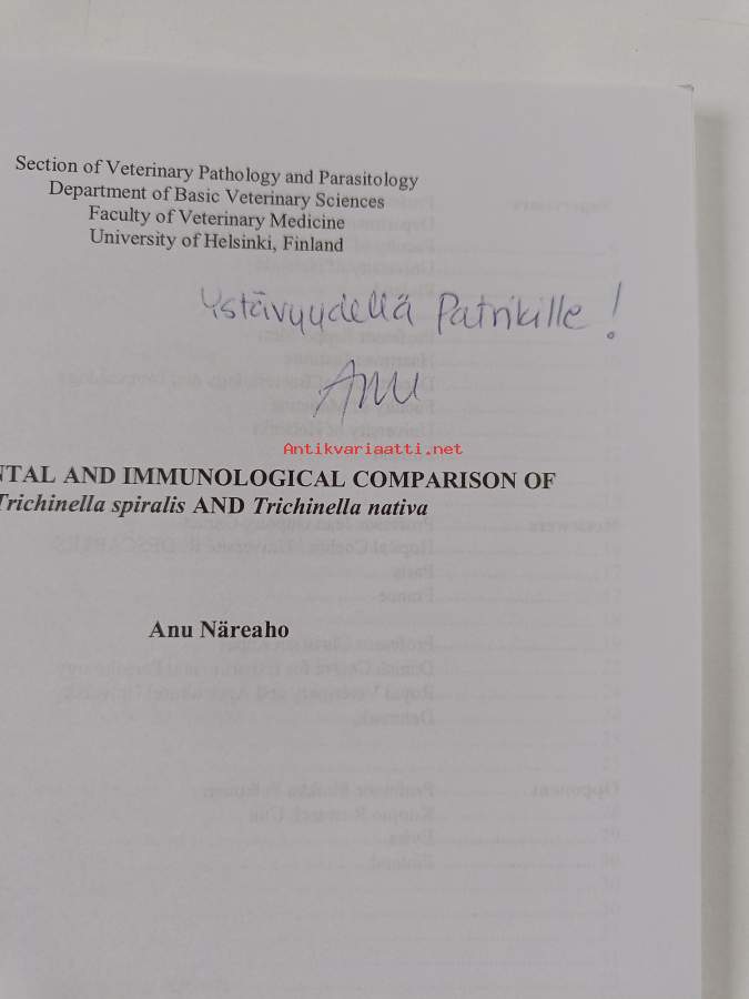 Experimental and Immunological Comparison of Trichinella Spiralis and Trichinella Nativa (signeerattu, tekijän omiste)