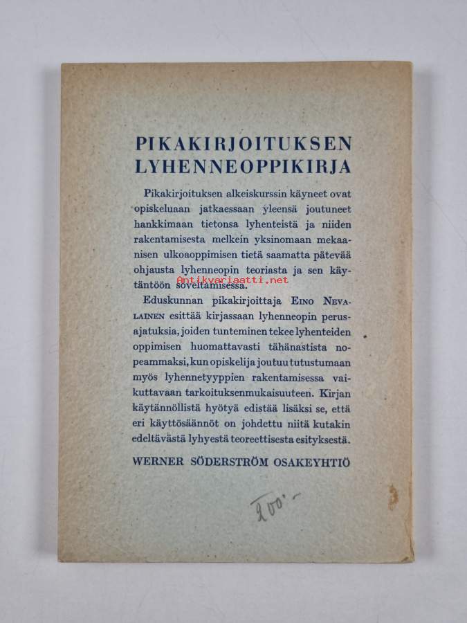 Pikakirjoituksen oppikirjaKirjaHenkilö Neovius-Nevanlinna, L., WSOY 1946