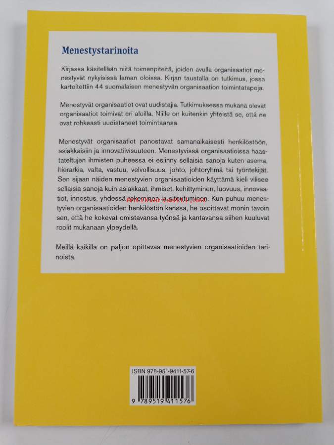 Asiasanat: liike-elämä, menestyminen, asiakaslähtöisyys, yritykset, tarinat, työelämä, liiketoiminta, työyhteisöt, tuottavuus, menestystekijät, organisaatiot, organisaatiotutkimus, julkinen hallinto, innovaatiot, henkilöstö, tuloksellisuus, kertomukset, aineeton pääoma, esimiestyö, narratiivinen tutkimus, esihenkilötyö