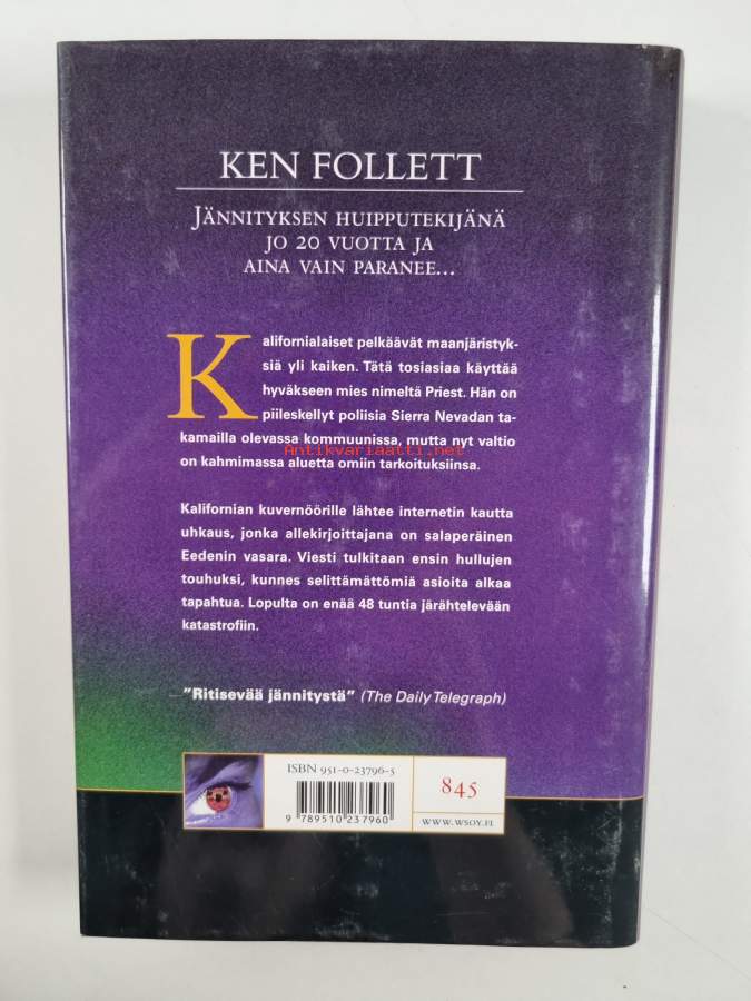 Kirjavaliot : Follett, Ken : Eedenin vasara ; Cook, Robin : Myrkky ; Harrison, Stuart : Lumihaukka ; Mercer, Judy : Ilman menneisyyttä