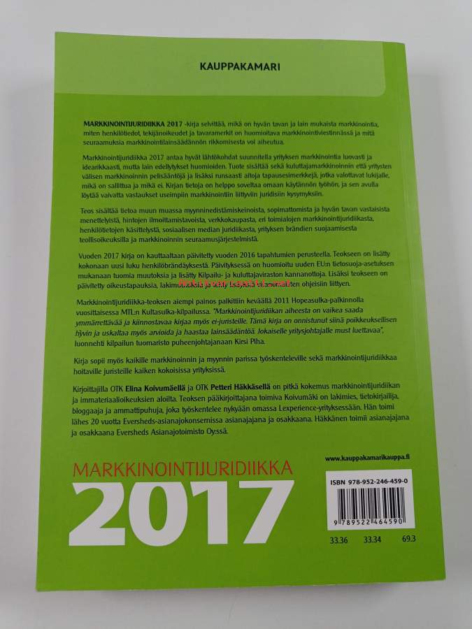 Muu(t) tekijä(t): Petteri HäkkänenAsiasanat: verkkokauppa, markkinointi, lainsäädäntö, sosiaalinen media, kuluttajansuoja, markkinointiviestintä, suoramarkkinointi, oikeudellinen sääntely, tietosuoja, henkilörekisterit, immateriaalioikeus, markkinaoikeus, henkilötiedot, yritysmarkkinointi, kuluttajansuojalaki, hyvä tapa, lagstiftning, marknadsföring, sociala medier, marknadskommunikation, näthandel, god sed, marknadsrätt, immaterialrätt, konsumentskydd, datasekretess, viraalimarkkinointi, personregister (personupplysningar), tuotesijoittelu, direktmarknadsföring, konsumentskyddslag