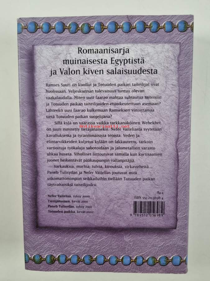 Muu(t) tekijä(t): Anna-Maija ViitanenMerkinnät: omistajamerkintä leikattu pois etulehden ylälaidastaAlkuteos: La pierre de lumiere ; La femme sageAsiasanat: Egypti