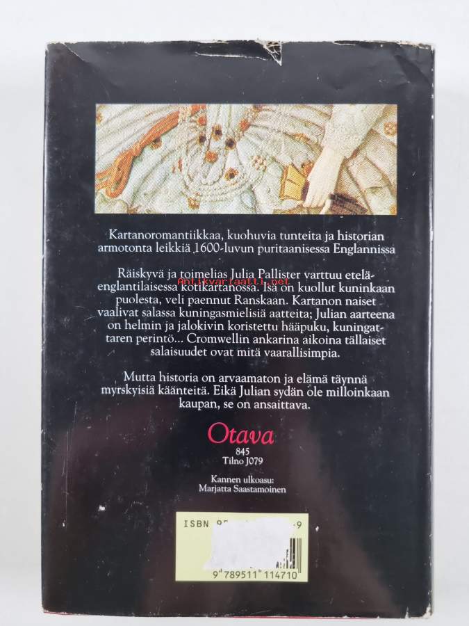 Hyvä. Tarkempi kuntoluokka: K3+ ; Hieman kulumaa kansissa, edessä hintalapun jäämää. Kansipaperin kunto: jonkin verran kulumaa/pienoisia repeämiä