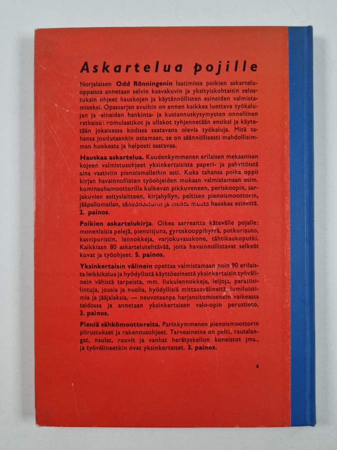 Hyvä. Tarkempi kuntoluokka: K3- ; Pientä käytön jälkeä kansissa, pienoista kolhua reunoilla ja kulmissa. esilehdellä omistajamerkintä sekä ylivedetty omistajamerkintä