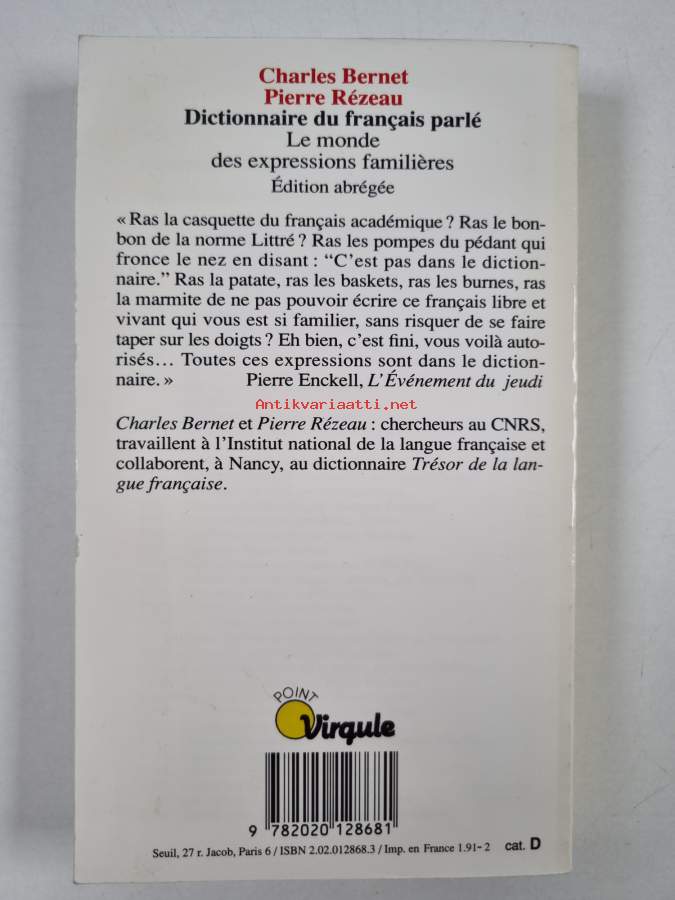 Muu(t) tekijä(t): Pierre RézeauSarja: Point-Virgule V92Asiasanat: sanakirjat, ranskan kieli, puhekieli