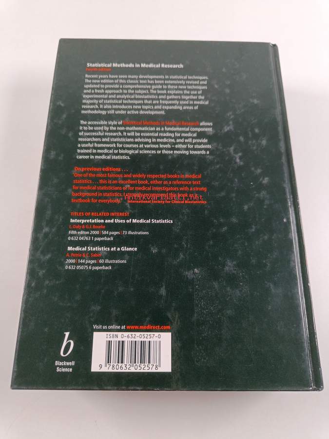 Muu(t) tekijä(t): G. Berry, J. N. S. MatthewsMerkinnät: omistajamerkintä leikattu pois etulehden ylälaidastaAsiasanat: research, Statistics, statistics as topic, Biometry, Biostatistics