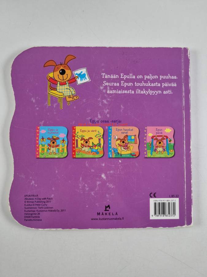 Muu(t) tekijä(t): Terhi LeskinenSarja: Eppu osaaAlkuteos: A day with PatchAsiasanat: lastenkirjallisuus, koira, kuvakirjat, paksulehtiset kirjat