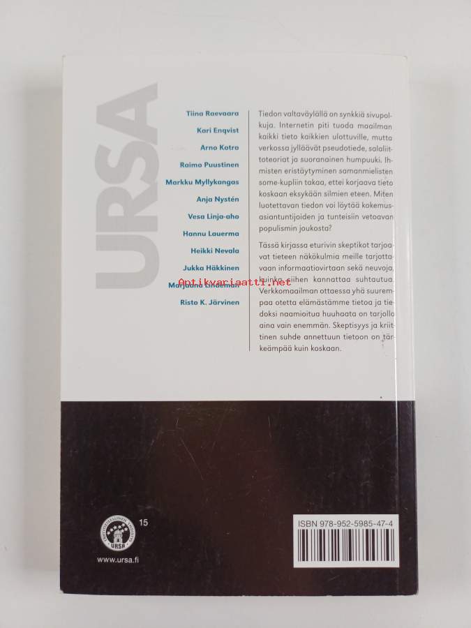 Muu(t) tekijä(t): Arno Kotro, Kari Enqvist ym.Sarja: Ursan julkaisuja 154Asiasanat: tieto, tiedonvälitys, vastaanotto, informaatio, kriittisyys, informaatiolukutaito, oikeellisuus, totuudellisuus
