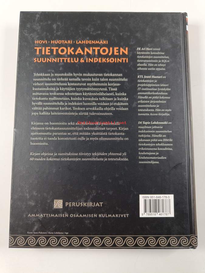 Sarja: PeruskirjatAsiasanat: tietotekniikka, suunnittelu, tiedonhallinta, WWW, ohjelmointi, tietokannat, mallintaminen, sisällönkuvailu, indeksointi, SQL, relaatiotietokannat, suorituskyky, sovellusohjelmat, tietovarastot, asiasanoitus, indeksointi (tietotekniikka)