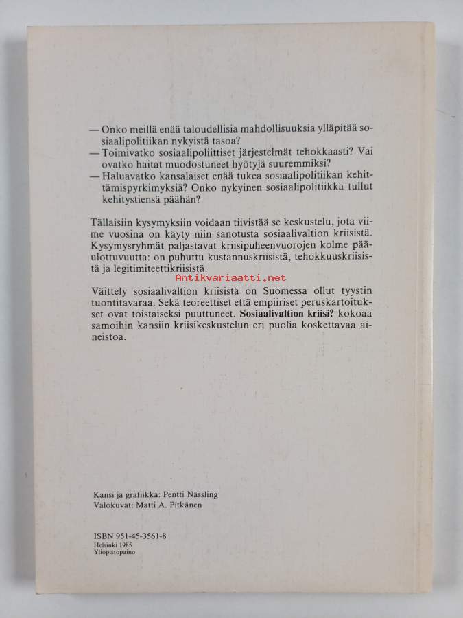 Sosiaalivaltion kriisi? : aineistoa suomalaisen sosiaalipolitiikan ajankohtaisista ongelmista (signeerattu, tekijän omiste)