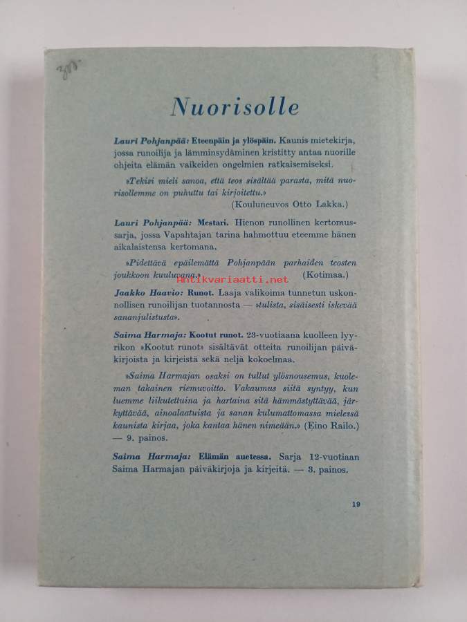 Hyvä. Hieman kolhua selkämyksen päissä, hieman kulumaa, selkämyksessä hieman vinoutta. Kansipaperin kunto: kulumaa/pienehköjä repeämiä & tahraisuutta