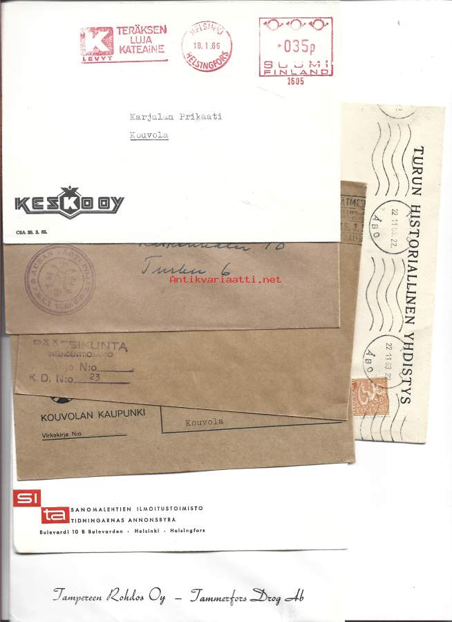 1960 -luvun kulkeneita firmakuoria 7 kpl erä