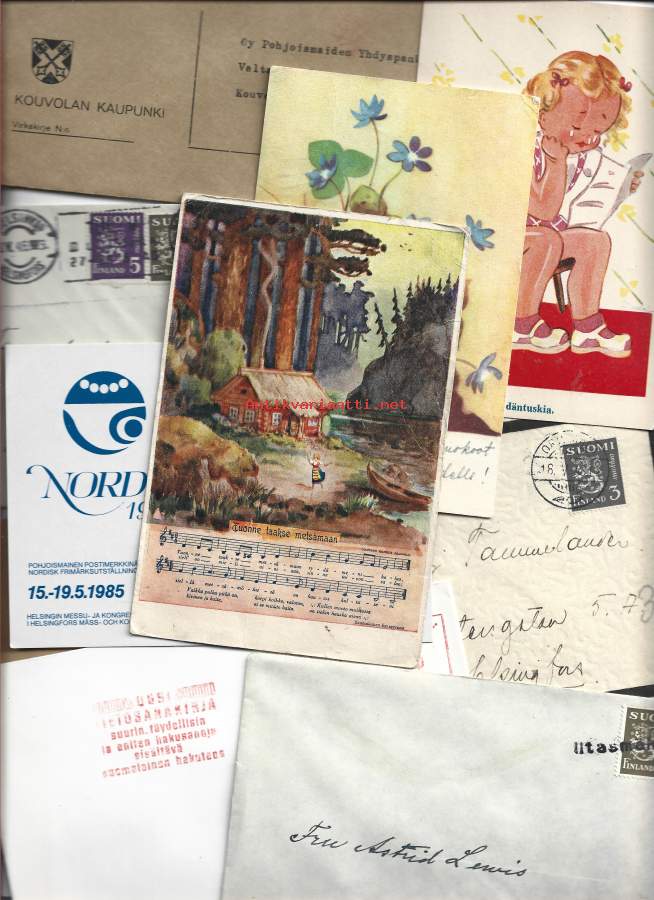 Sekalainen erä leimoja, kortteja yms n 20 kpl