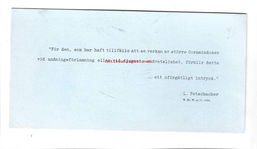 Coramin lääkemainos imupaperi mainos