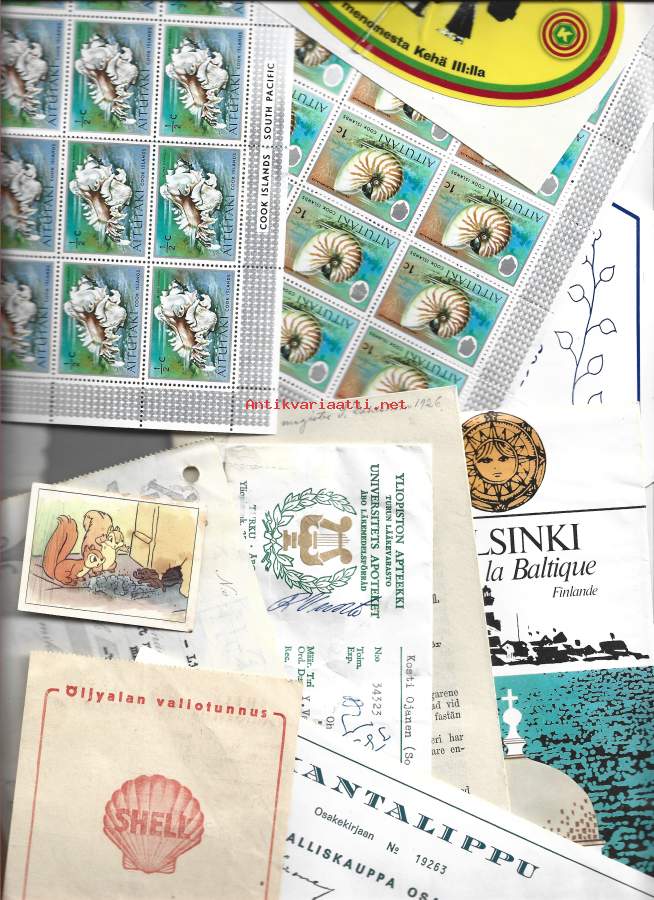 Sekal erä kortteja tarroja yms yli 20 kpl