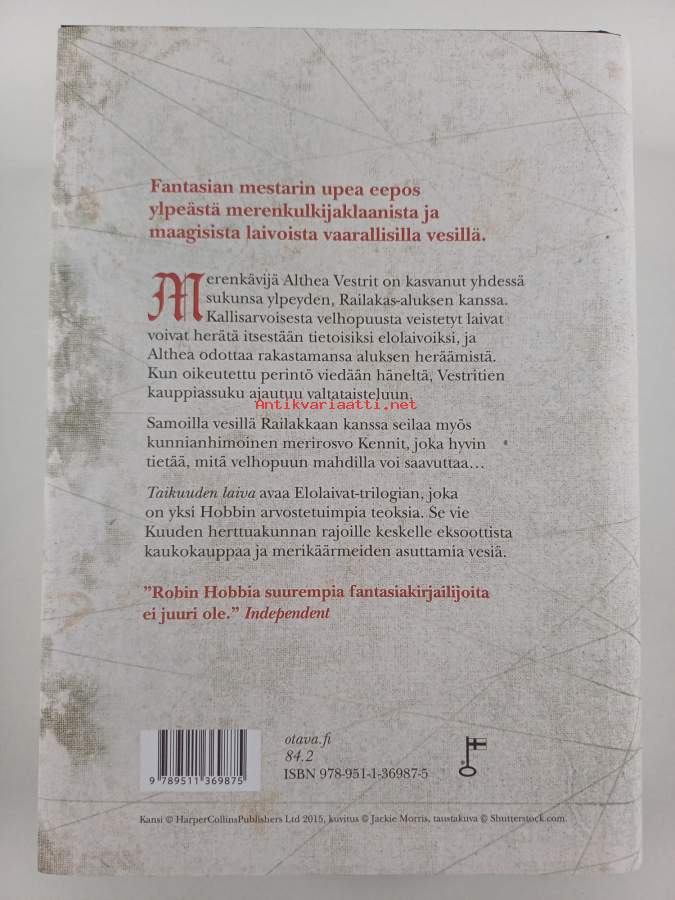 Sarja: ElolaivatAlkuteos: The liveship traders: Ship of magicAsiasanat: merirosvot, fantasiakirjallisuus, merenkäynti, kaupankäynti, taikuus, orjakauppa, Narri ja Näkijä, Kuusi herttuakuntaa, elolaiva, kaupaunkäynti, merikäärmeet