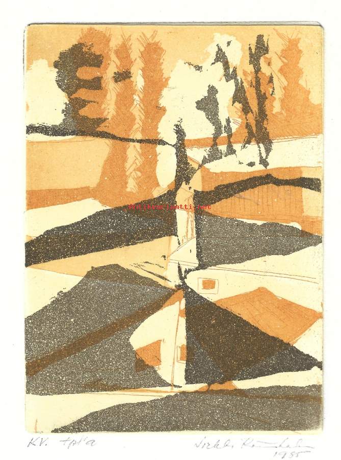 Sirkka Rönnholm värigrafiikka sign 1985 kv tpla kehystämätön 27x20 cm