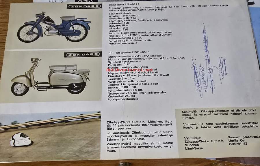 Zundapp mopedit, moottoripyörät ja skootterit 1968 myyntiesite.