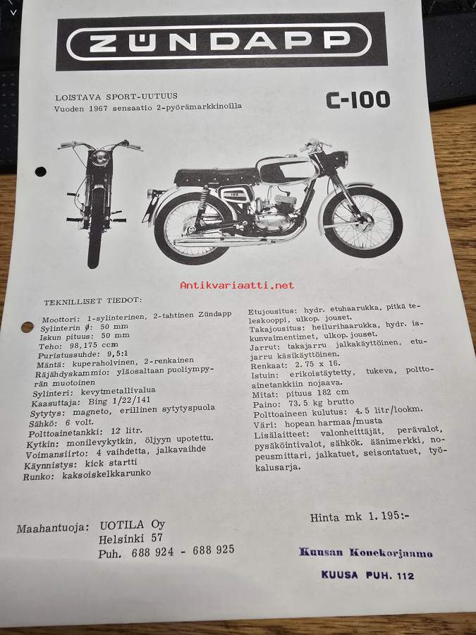 Zundapp combinette ja ks 75 myyntiesite.