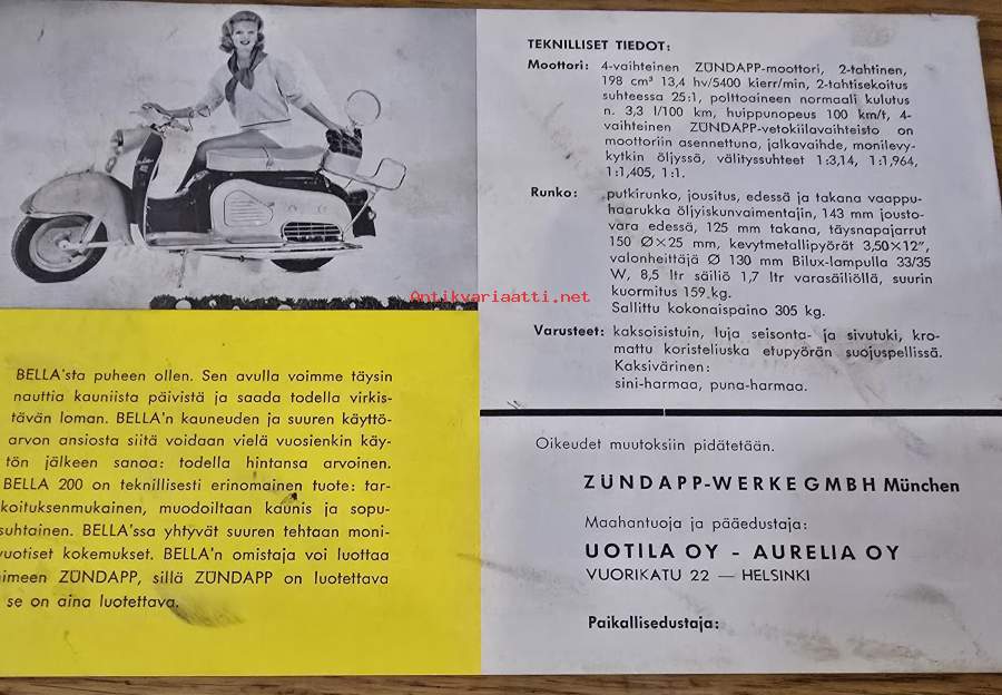 Zundapp bella 175 s ja bella 200 myyntiesite