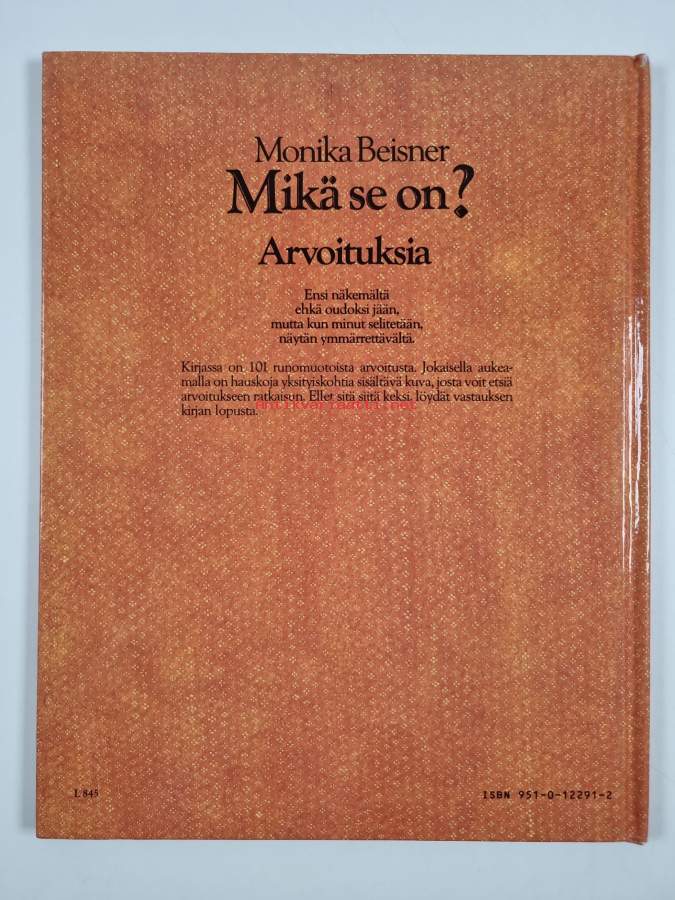 Hyvä. Tarkempi kuntoluokka: K3- ; Pienoista kolhua, pienoista repeämää yhdessä kulmassa, hieman kulumaa. etukannen sisäpuolelle liimattu tarra