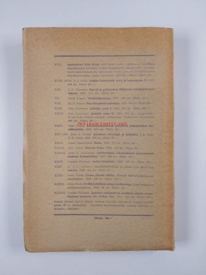 Hyvä. Tarkempi kuntoluokka: K3- ; Hieman kulumaa, hieman repeämää selkämyksen alareunassa, kansien reunoilla taittumaa ja rispaantumaa (koska ohuehkot kannet sivuja leveämmät), selkämyksessä hieman vinoutta, selkämyksessä lukutaittumaa, sivut vielä osittain leikkaamatta auki eli osittain lukematon kirja
