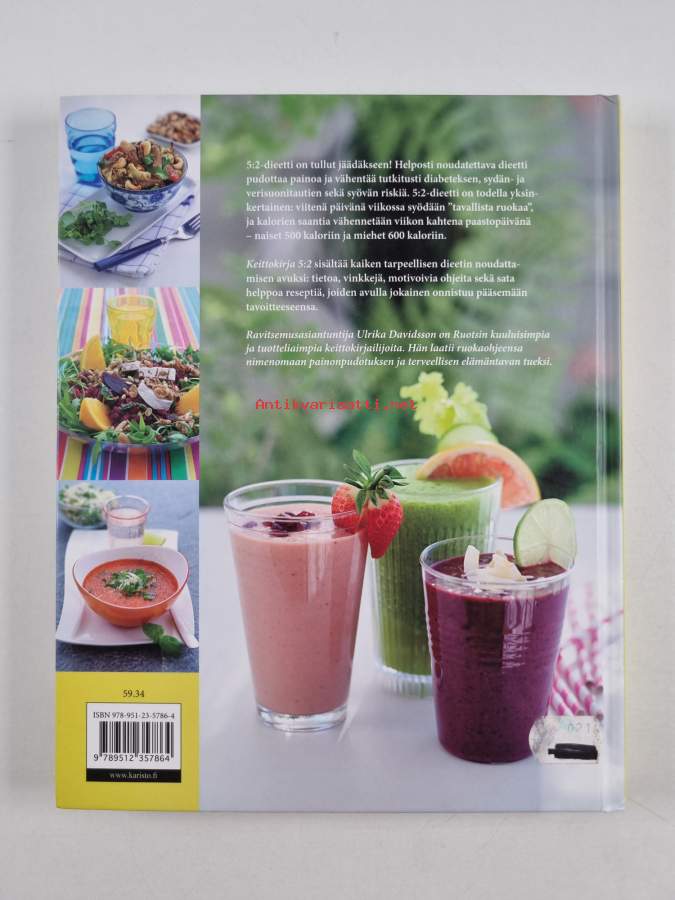 Muu(t) tekijä(t): Auli Hurme-Keränen, Malte DanielssonAlkuteos: Ulrika Davidssons kokbok om 5:2Asiasanat: ruokaohjeet, keittokirjat, ruokavaliot, laihdutus, painonhallinta, paasto, 5:2-dieetti