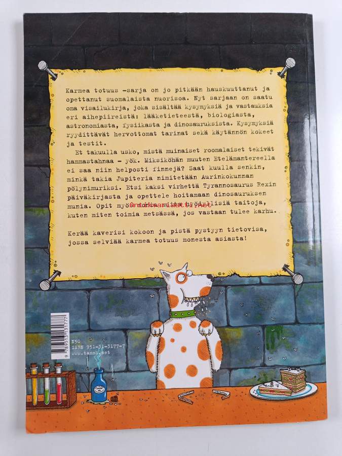 Muu(t) tekijä(t): Tarja Rouhiainen, Tony De SaullesMerkinnät: omistajamerkintäSarja: Karmea totuus -sarjaAlkuteos: Horrible science : the awfully big quiz bookAsiasanat: tietokilpailut, visailukysymykset, lääketiede, fysiikka