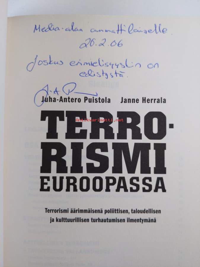 Terrorismi Euroopassa : terrorismi äärimmäisenä poliittisen, taloudellisen ja kulttuurillisen turhautumisen ilmentymänä (signeerattu, tekijän omiste)