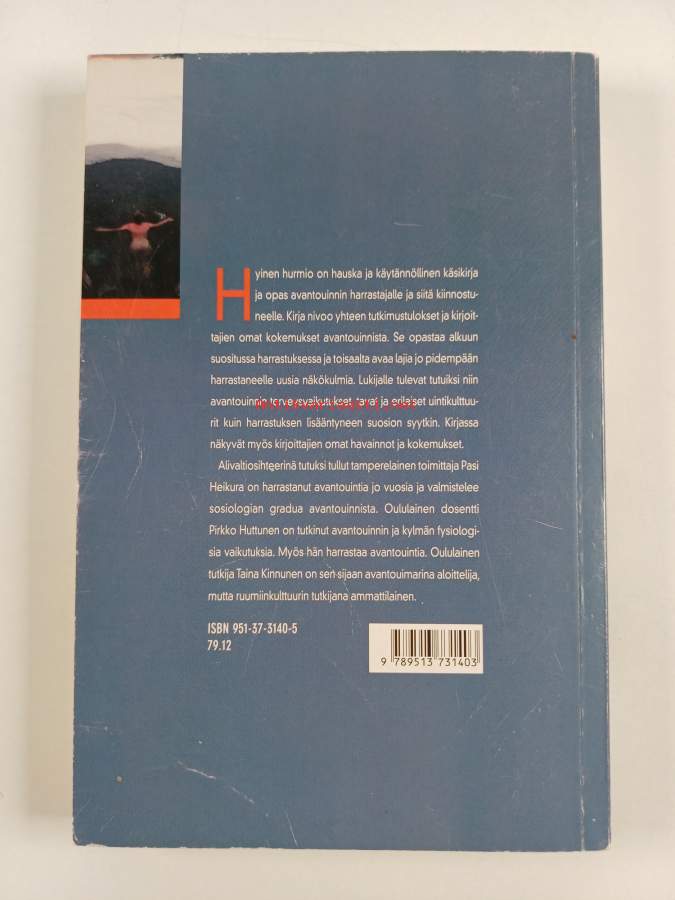 Muu(t) tekijä(t): Pasi Heikura, Pirkko Huttunen ym.Merkinnät: omistajamerkintä leikattu pois etulehden ylälaidastaSarja: Ulkoilusta terveyttäAsiasanat: fysiologia, uinti, talvi, kylmyys, avantouinti