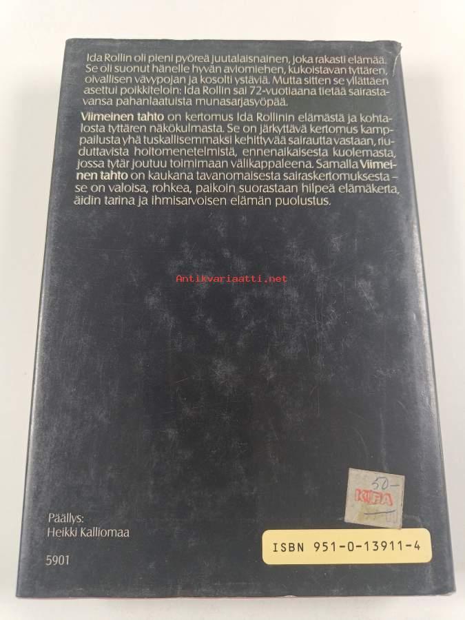 Muu(t) tekijä(t): Tellervo RiikonenAlkuteos: Last wishAsiasanat: muistelmat, syöpätaudit, hoitomenetelmät, itsemurha, sairastuminen