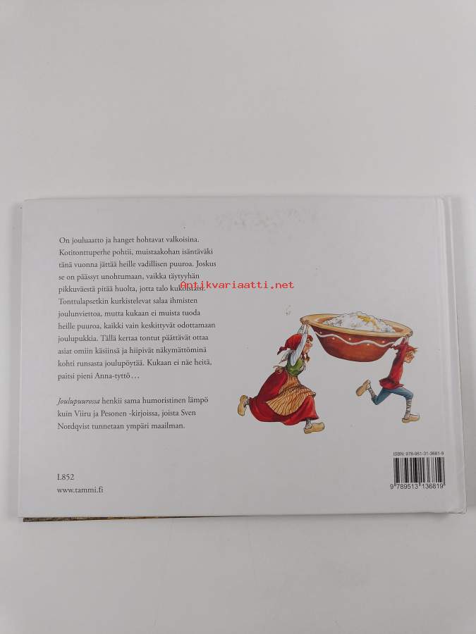 Jenny Nyströn. Tonttu antaa joulu puuroa talli kissalleNyrkkipostia.