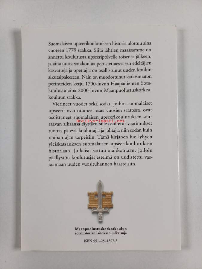 Merkinnät: omistajamerkintä (tarra)Sarja: Maanpuolustuskorkeakoulun sotahistorian laitoksen julkaisujaAsiasanat: historia, sotilaskoulutus, upseerit, koulutus, maanpuolustuskorkeakoulut, kadettikoulut, utbildning, officerare, militär utbildning, sotakorkeakoulut, kadettskolor, försvarshögskolor, krigshögskolor