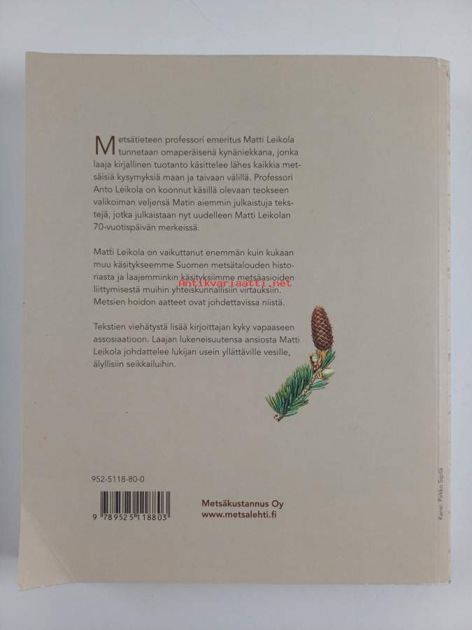 Merkinnät: omistajamerkintäAsiasanat: historia, henkilöhistoria, metsäala, taide, kulttuuri, kirjallisuus, metsätalous, metsänhoito, metsät, aiheet, opetus, bibliografiat, henkilöbibliografiat, metsätieteet, metsänhoitajat, metsäntutkimus, julkaisut, konst, personhistoria, kultur, litteratur, forstmästare, undervisning, metsähistoria, skogsforskning, skogsbruk, skogsbranschen, bibliografier, ämnen, skogsskötsel, skogar, publikationer, personbibliografier, skogsvetenskaper, metsäopetus