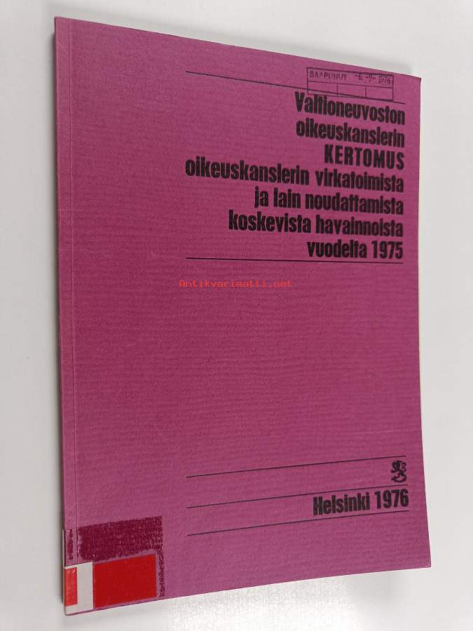 Valtioneuvoston oikeuskanslerin kertomus oikeuskanslerin virkatoimista ja lain noudattamista koskevista havainnoista annettu vuodelta 1975