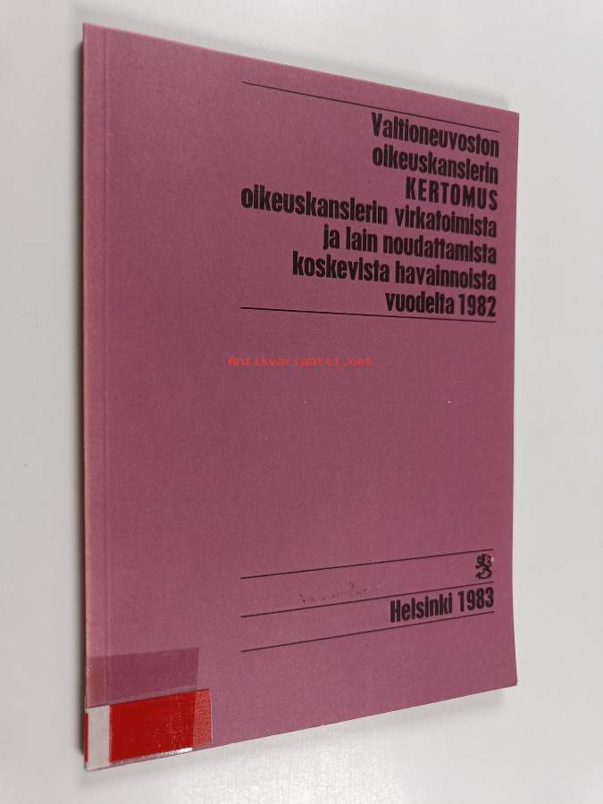 Valtioneuvoston oikeuskanslerin kertomus oikeuskanslerin virkatoimista ja lain noudattamista koskevista havainnoista annettu vuodelta 1982
