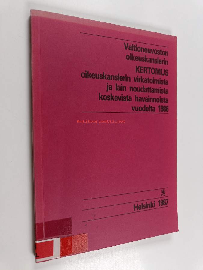 Valtioneuvoston oikeuskanslerin kertomus oikeuskanslerin virkatoimista ja lain noudattamista koskevista havainnoista annettu vuodelta 1986