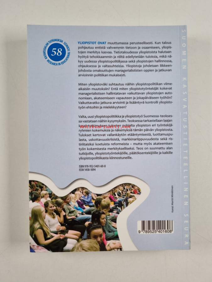 Muu(t) tekijä(t): Risto Rinne, Hannu Simola ym.Sarja: Kasvatusalan tutkimuksia 58Asiasanat: johtaminen, kokemukset, valta, muutos, identiteetti, vaikuttaminen, korkeakoulupolitiikka, yliopistot, vallankäyttö, työ, hallinto, tulosjohtaminen, henkilöstö, tietotalous, erfarenheter, makt, maktutövning, universitet, förändring, arbete, högskolepolitik, påverkan, förvaltning, personal, resultatstyrning, kunskapsekonomi