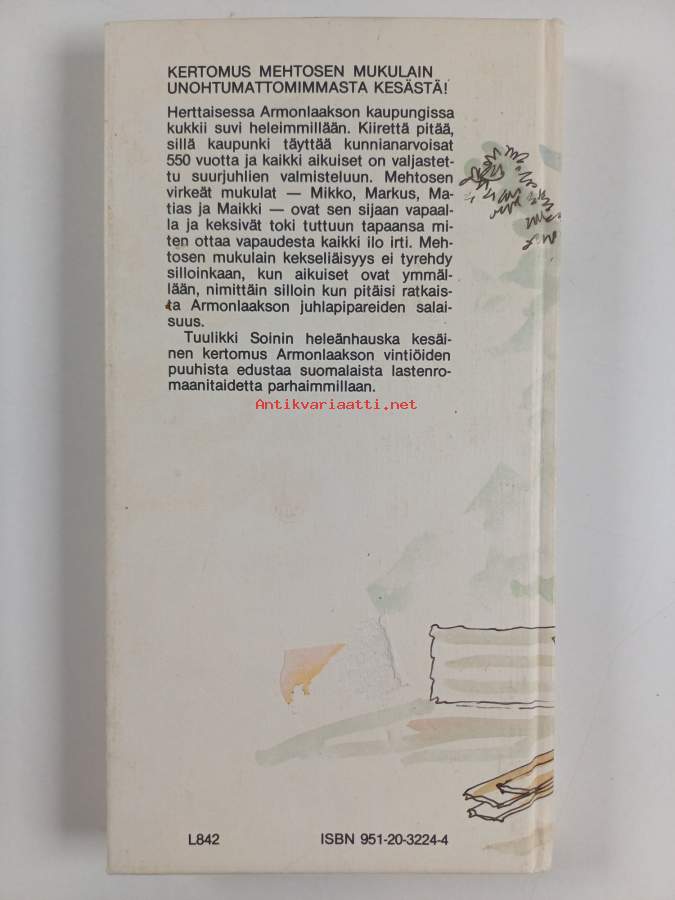 Hyvä. Hieman kulumaa, selkämyksessä hieman vinoutta, takana hintalapun jäämää. takakannessa pienoista pintarepeämää
