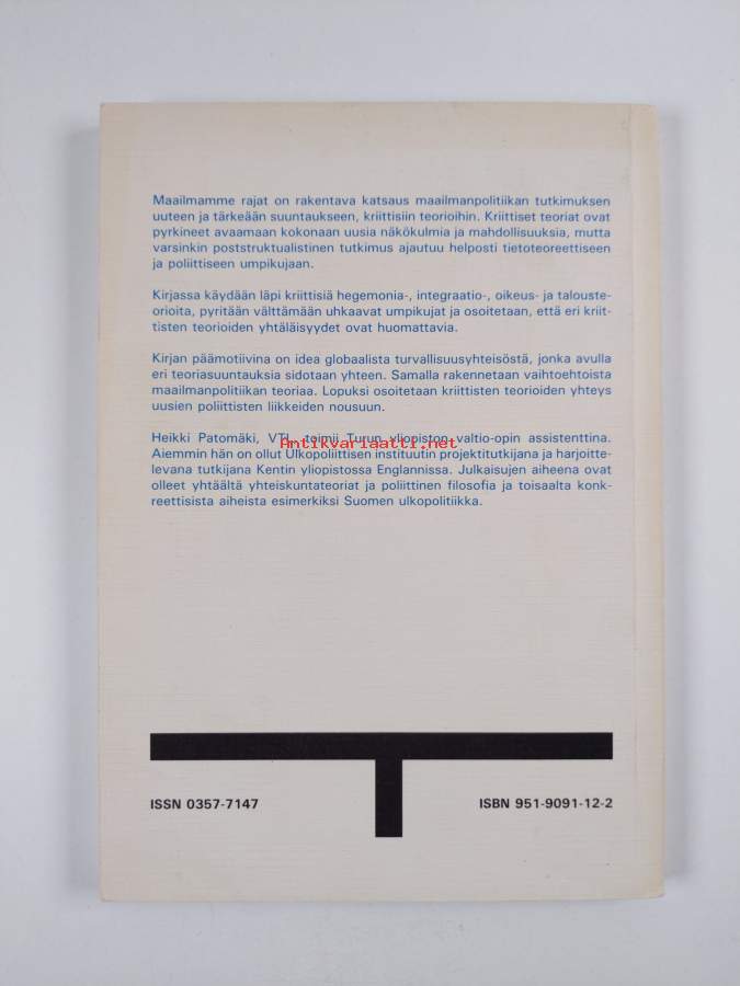 Sarja: Rauhantutkimus tänään no. 13Asiasanat: kansainväliset suhteet, tutkimus, filosofia, kansainvälinen politiikka, tutkimusmenetelmät, kansainvälinen oikeus, oikeusfilosofia, kriittinen teoria